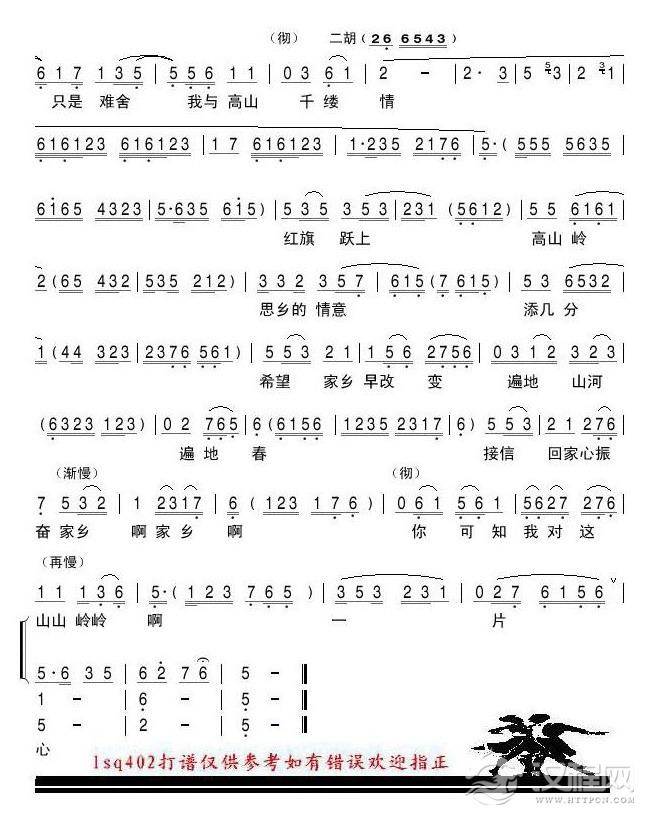 戏曲曲谱借月光再看看我的家乡