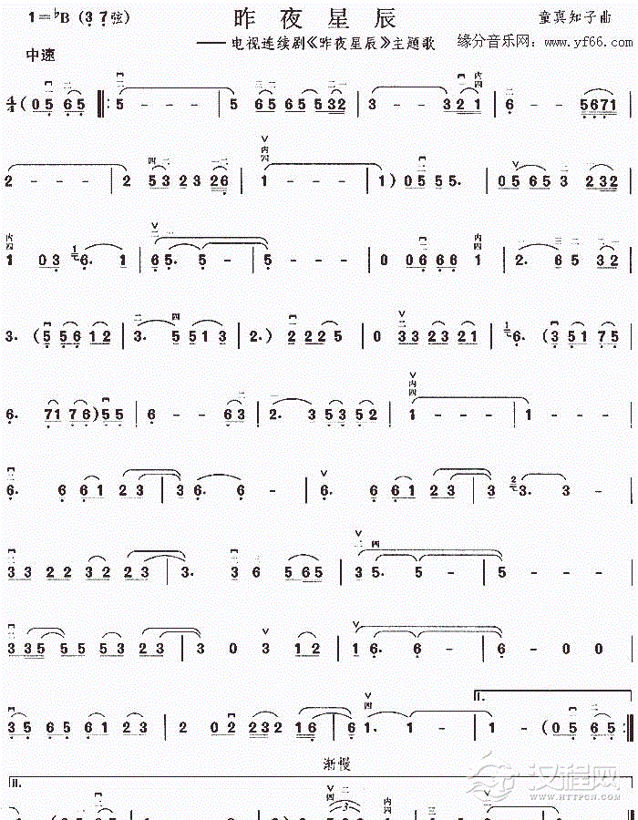 古筝谱《彩云追月》