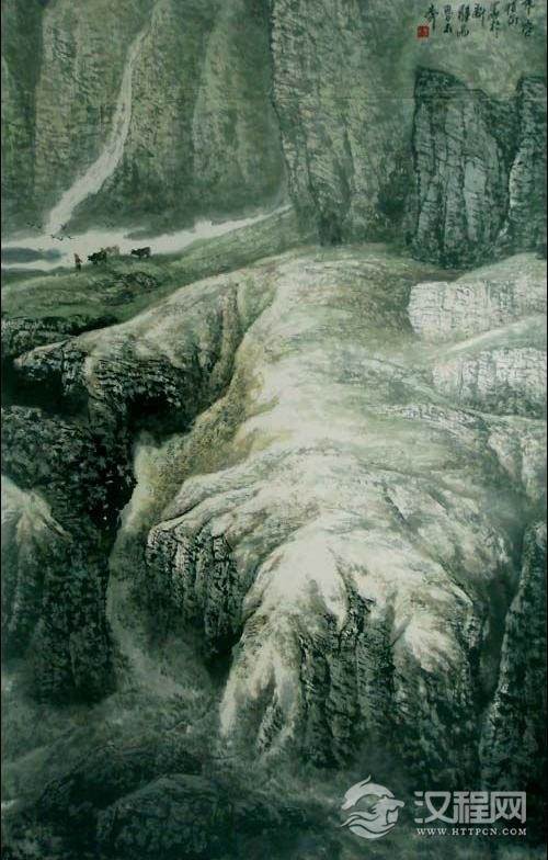 如果说创作使他对自然和生活较多的化为一种情愫的表达、诗意的提炼、哲思的认可的话,走出画室,远离城市,深入基层,实地写生,则让他从本质上把握了新疆的山水,他对于山和水的认识更理性了,更透彻了,更宏观了,浩然之气汲取于群山之间。写生使他大量吸收了山的豪迈、水的灵动、天地的博大。