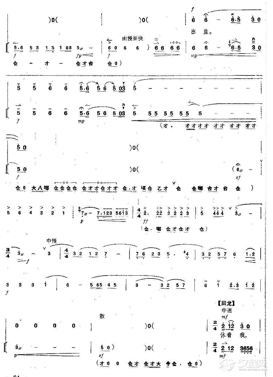 戏曲曲谱李香莲进书房破口大骂