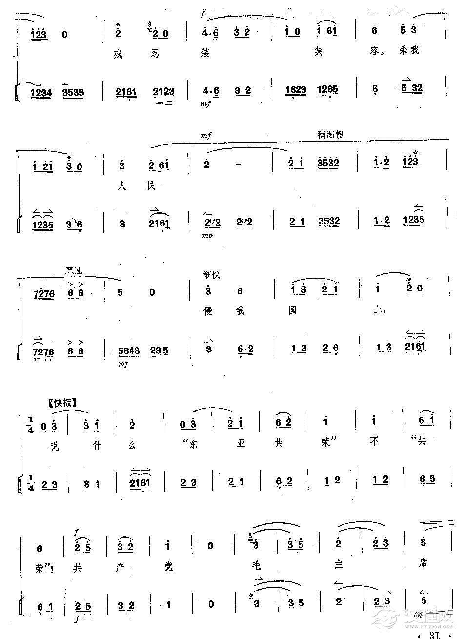 戏曲曲谱唱起母亲教我的歌