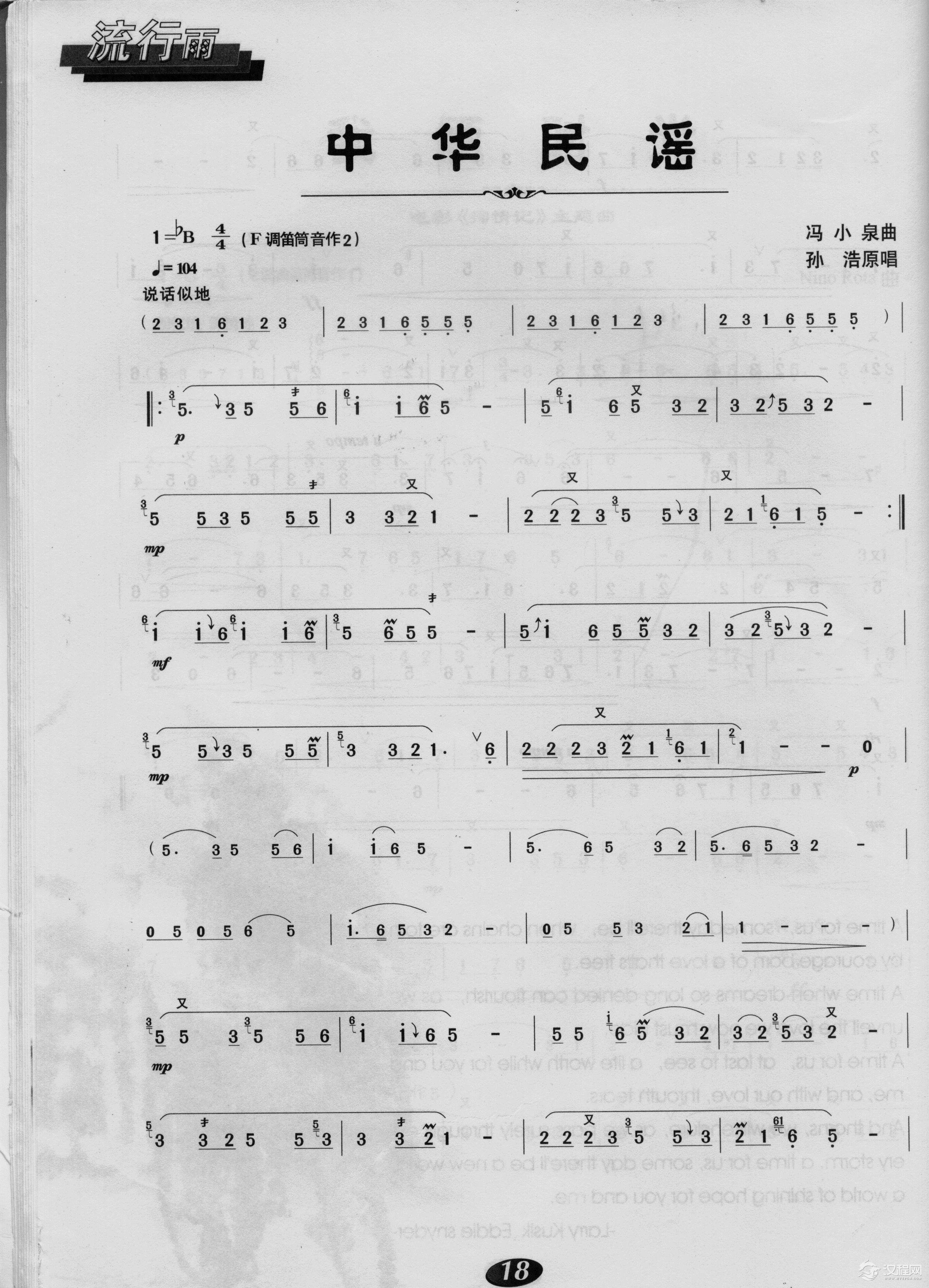 中华民谣(笛子曲谱)