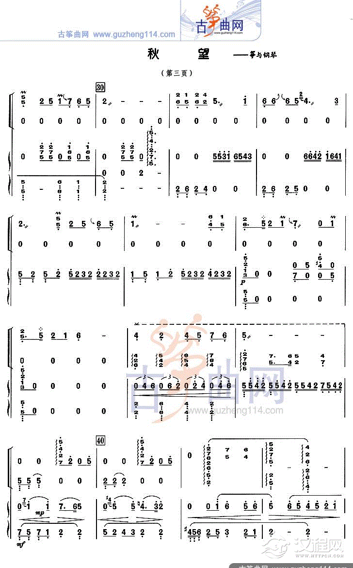 古筝谱《彩云追月》