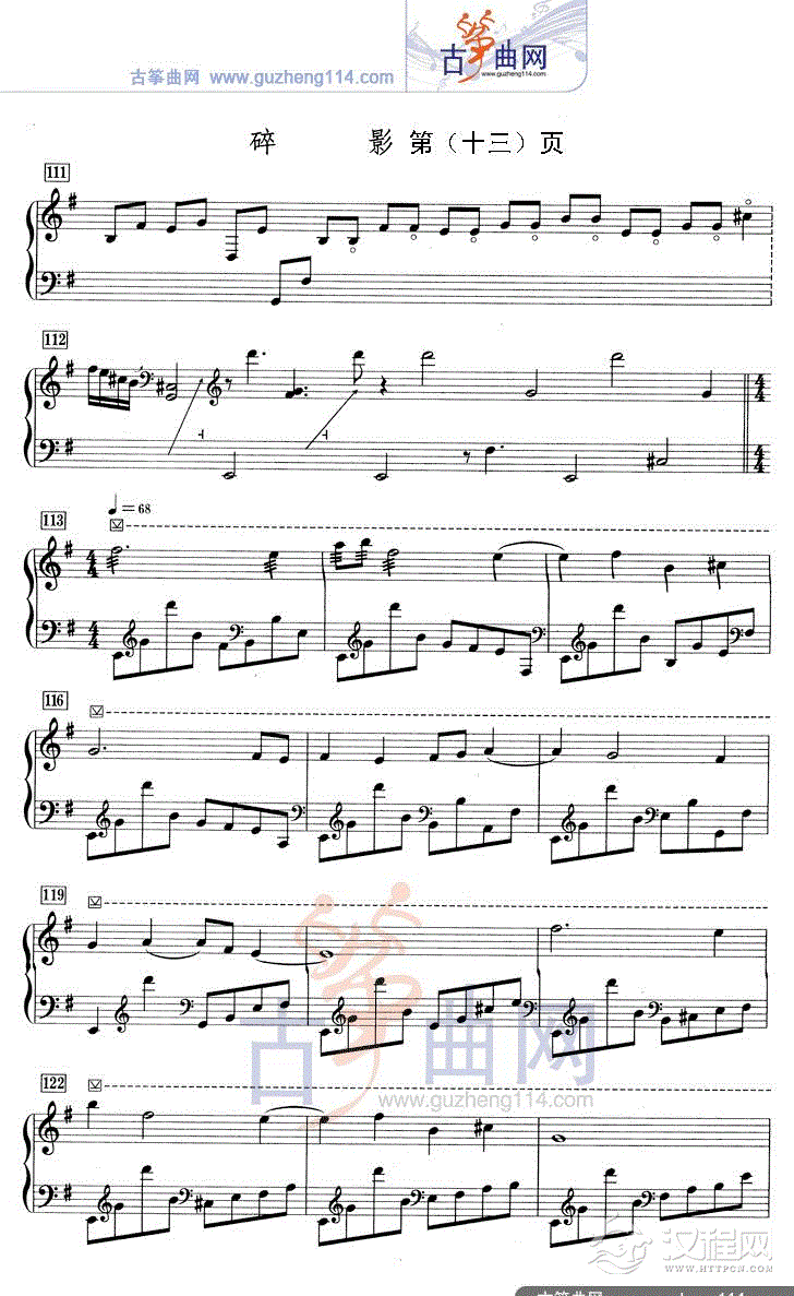 近关系转调练习:红河谷(扬琴伴奏谱)