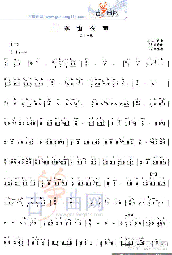 古筝谱《彩云追月》