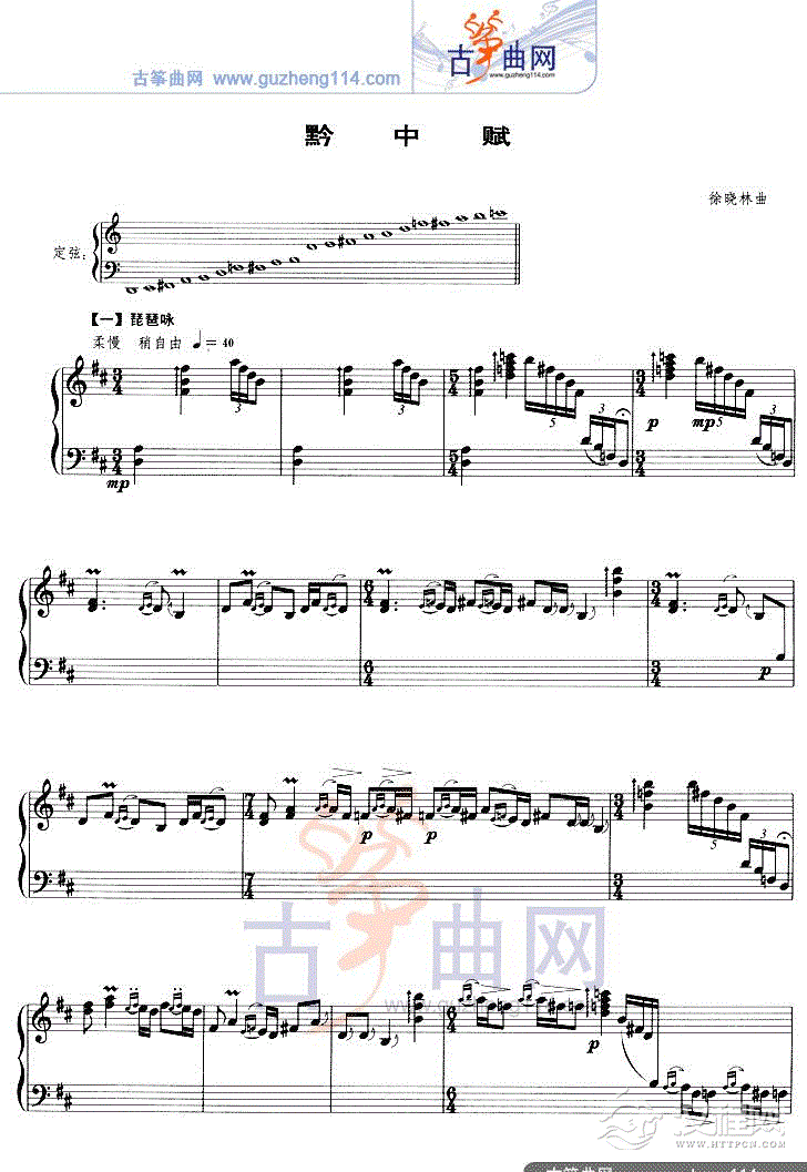 曲谱大全左手双音四度琴竹练习曲五
