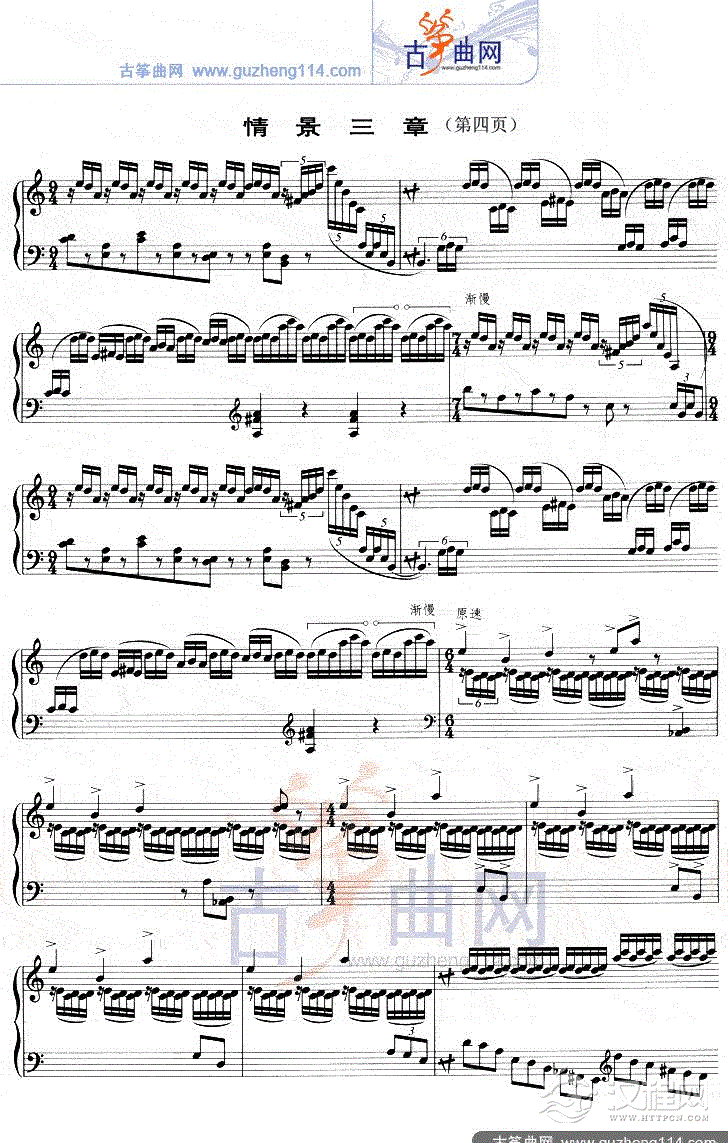 曲谱大全左手双音四度琴竹练习曲五