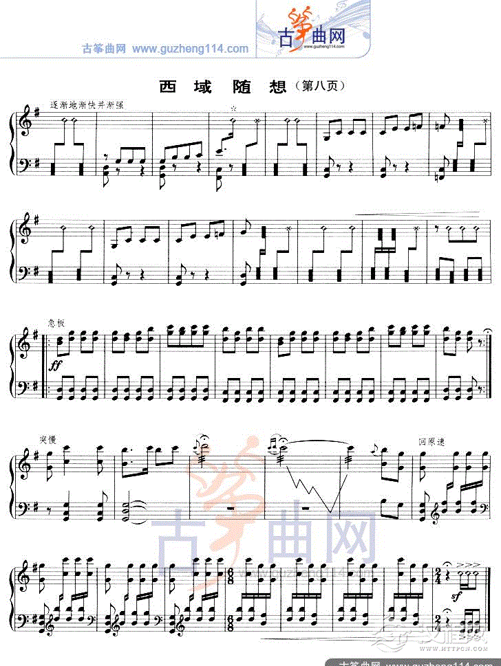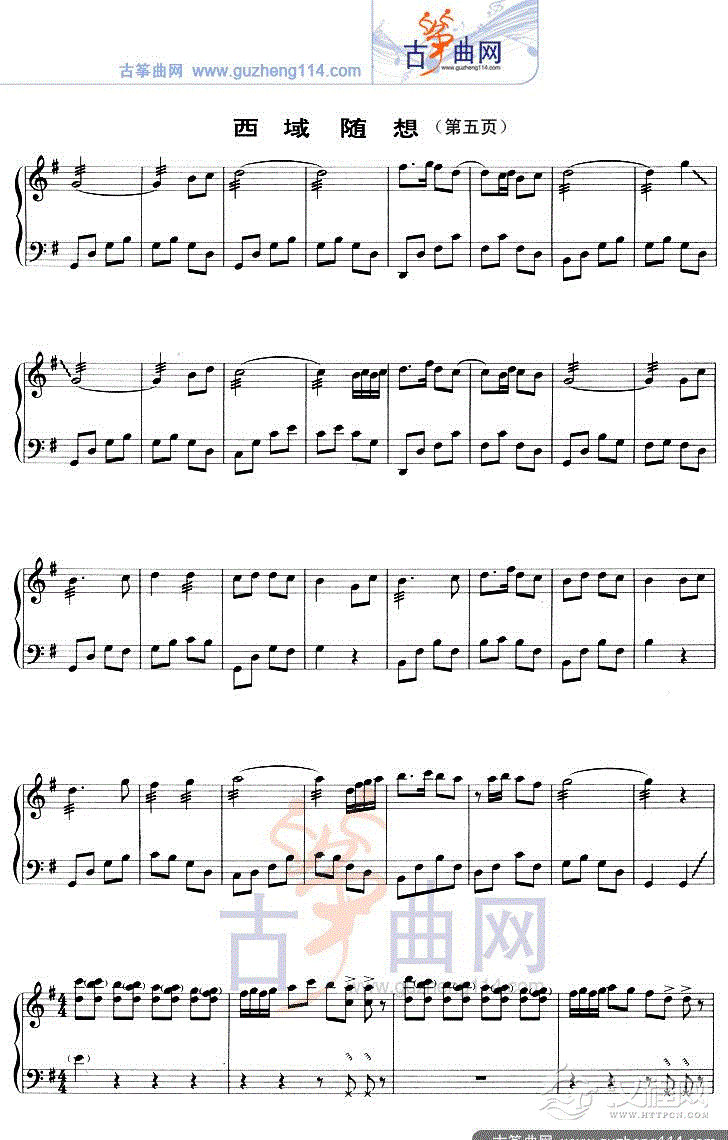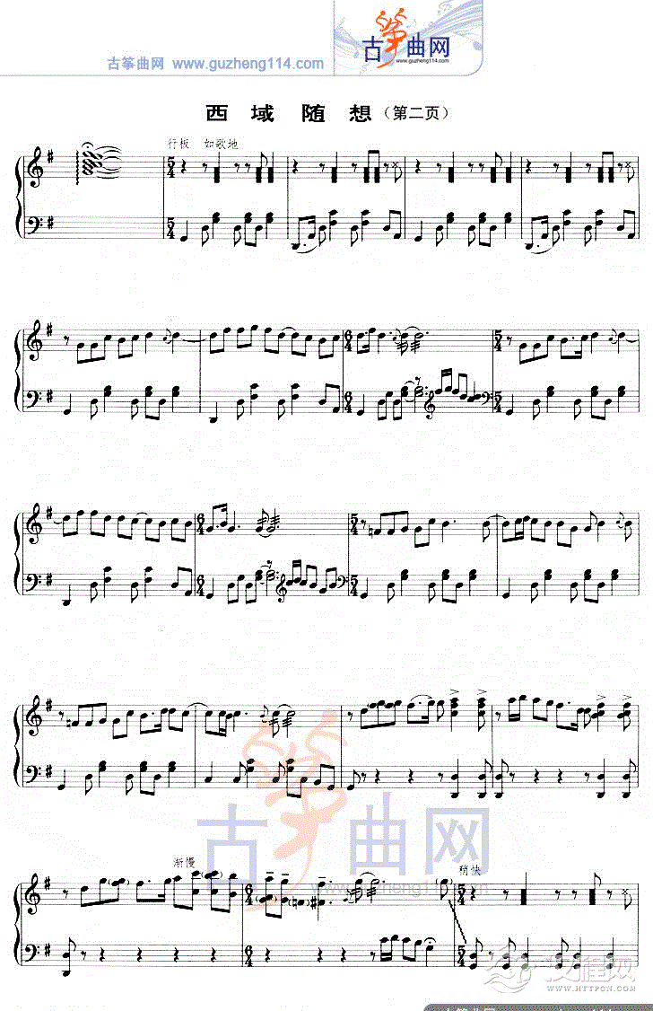 曲谱大全山的遐想(五线谱)