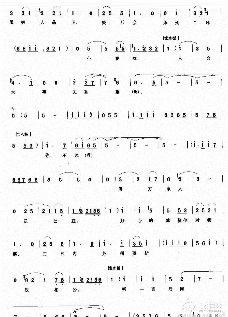 戏曲曲谱你千万不可寻短见