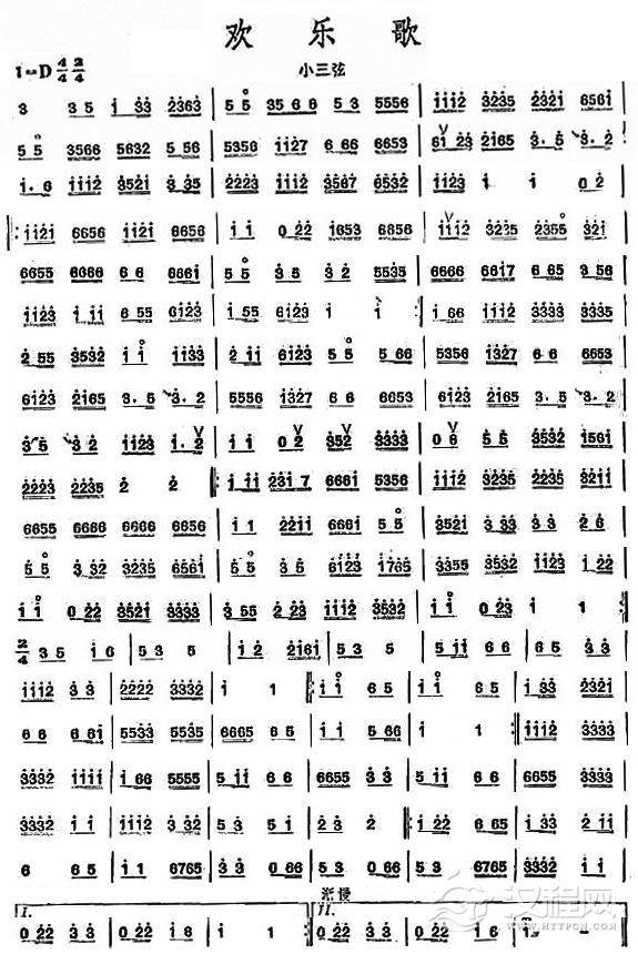 曲谱大全大寨红花遍地开(三弦分谱2)