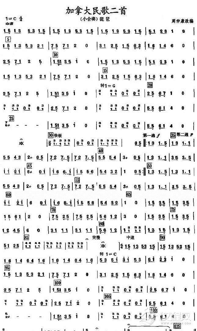 加拿大民歌之琵琶分谱