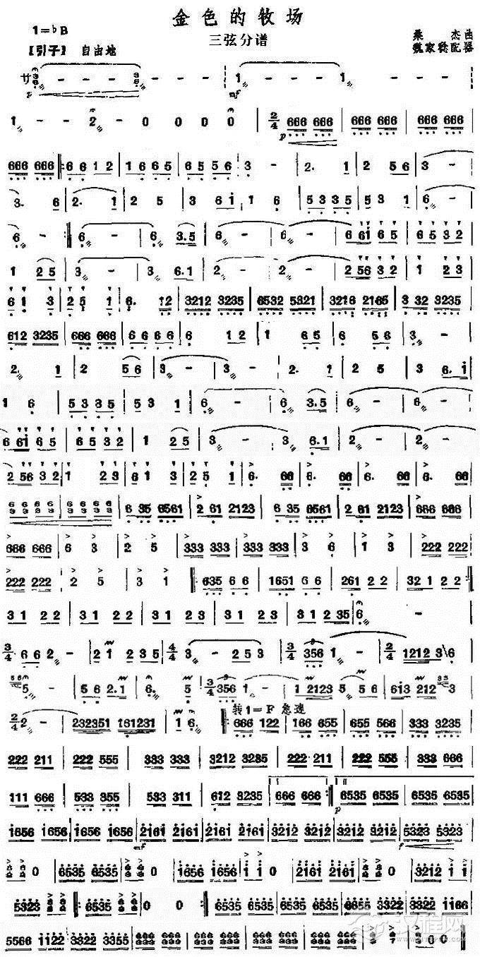 金色的牧场三弦分谱