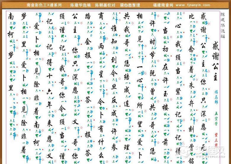 戏曲曲谱彩色工X谱《弄连柳连》南音