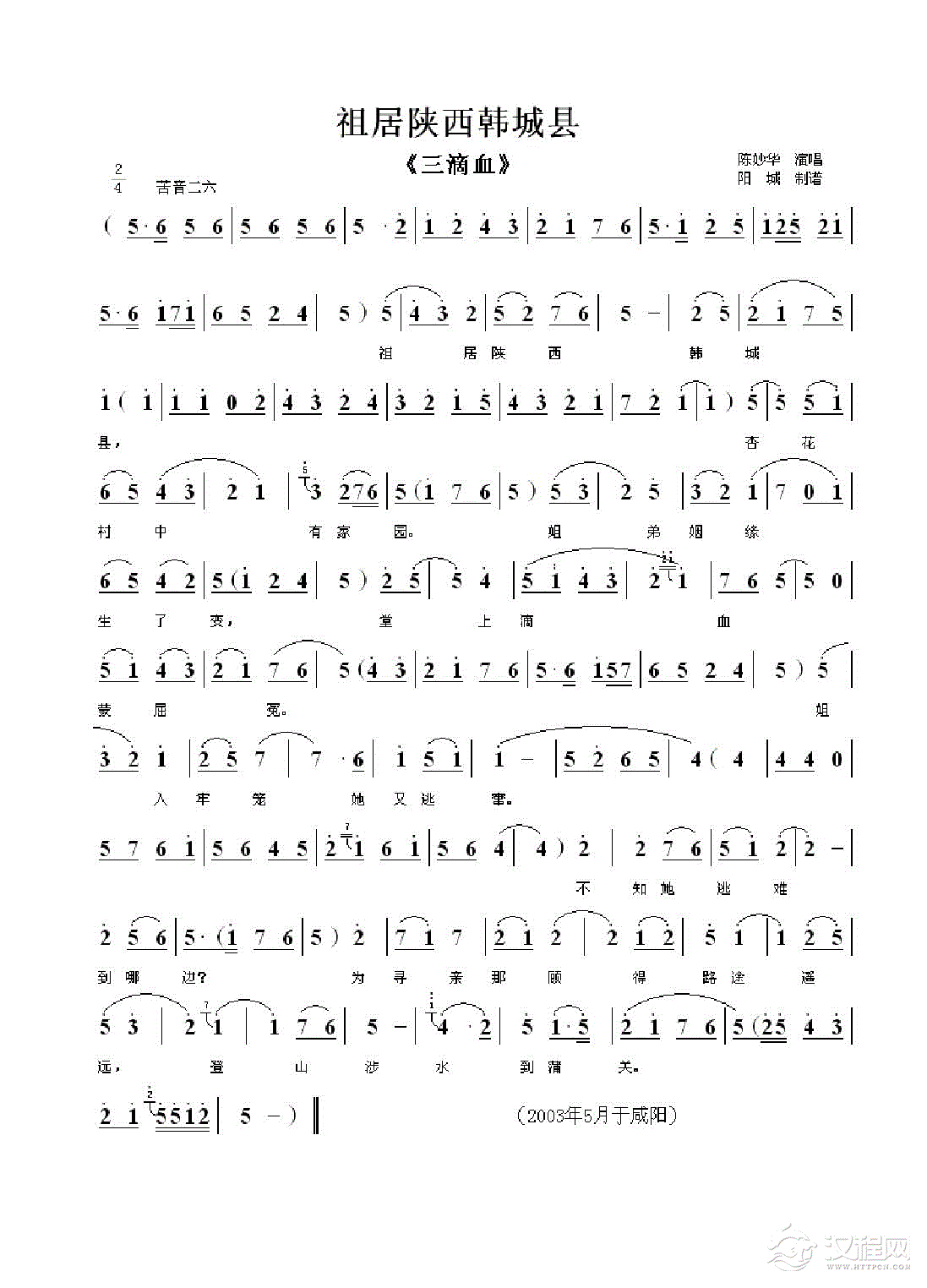 祖居陕西韩城县
