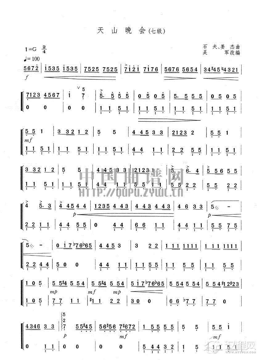 曲谱大全扬琴双音琴竹练习曲 (七)