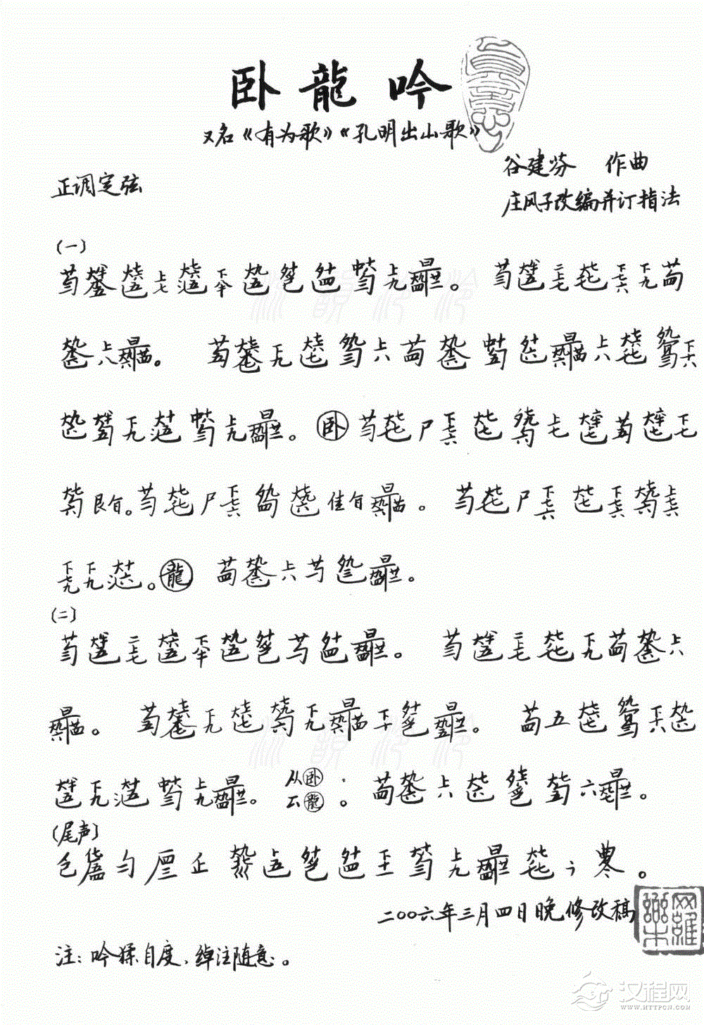 卧龙吟 (古琴减字谱)