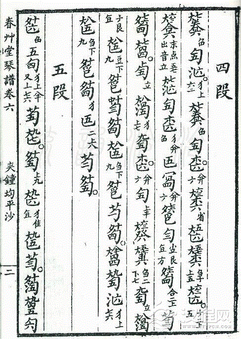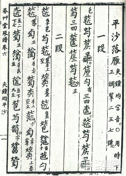 平沙落雁 (古琴减字谱,夹钟均,春草堂琴谱)