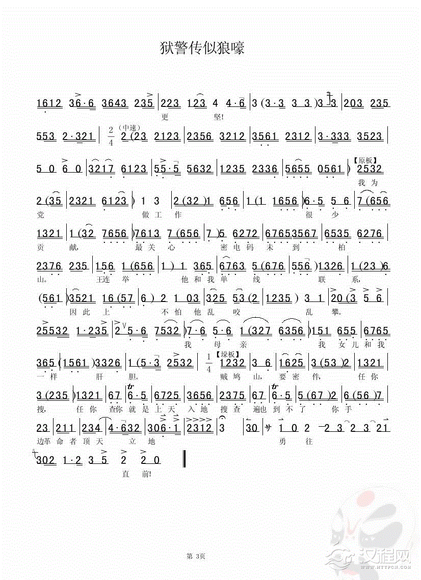戏曲曲谱咬定了牙关不肯赦