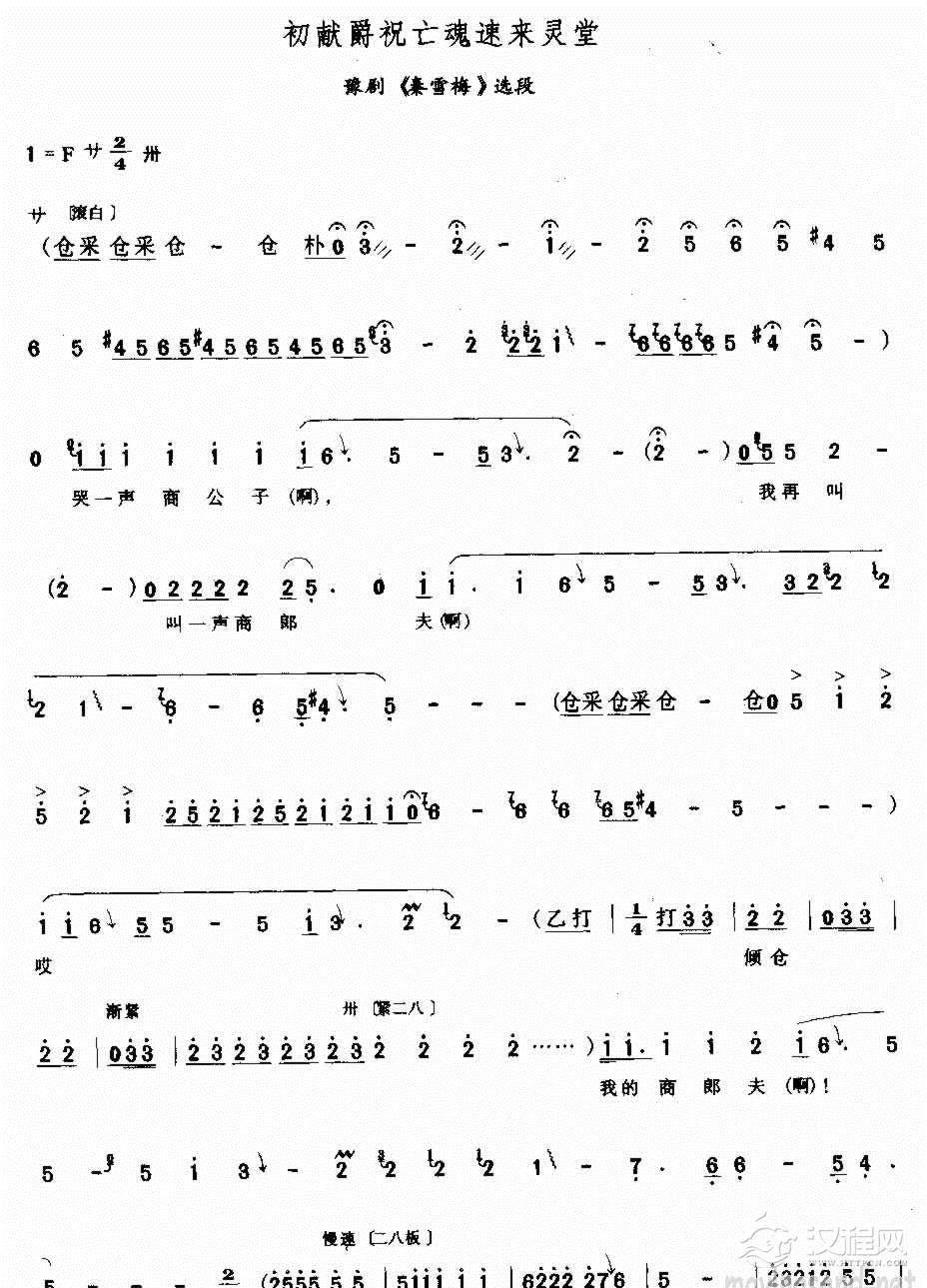 戏曲曲谱父有旨娘有命我只得前往