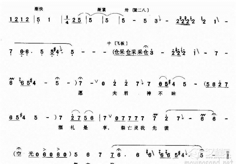 戏曲曲谱听罢奶奶说红灯