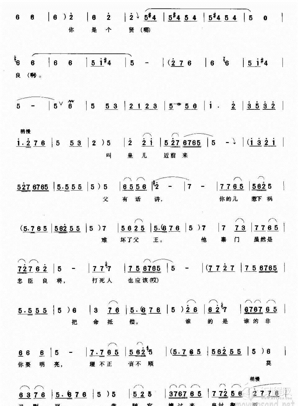 戏曲曲谱父有旨娘有命我只得前往