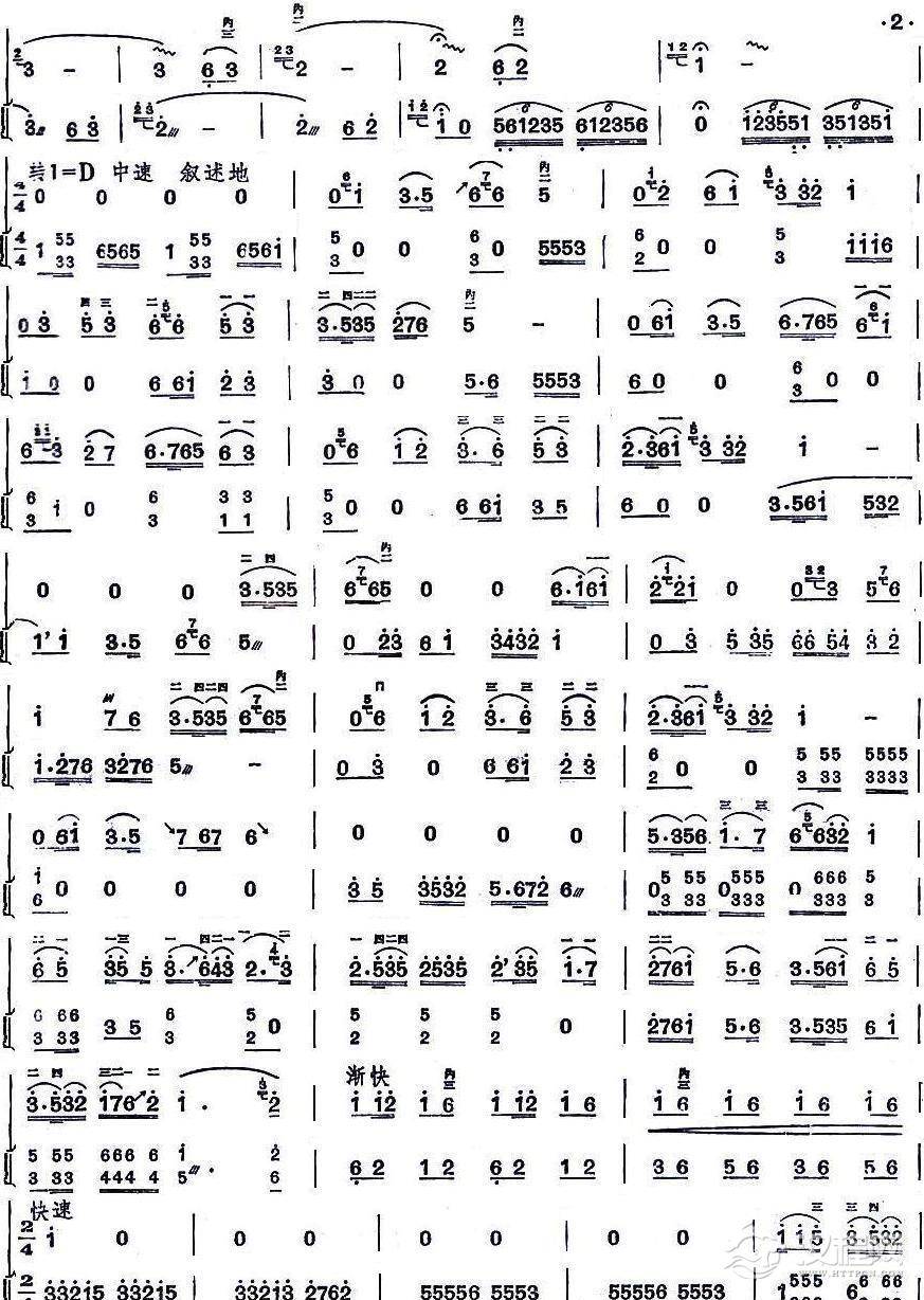 大寨红花遍地开(二胡分谱2)