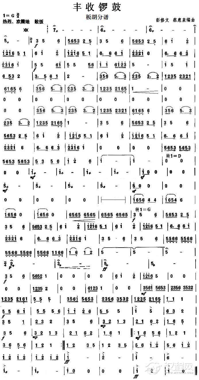 丰收锣鼓之板胡分谱