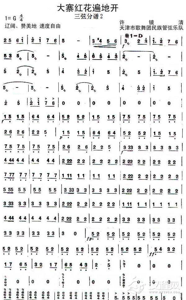 曲谱大全八月桂花遍地开三弦分谱