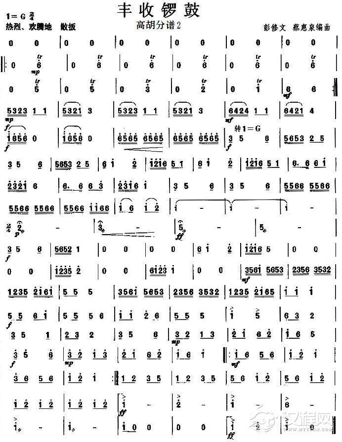 曲谱大全丰收锣鼓之高胡分谱(上)