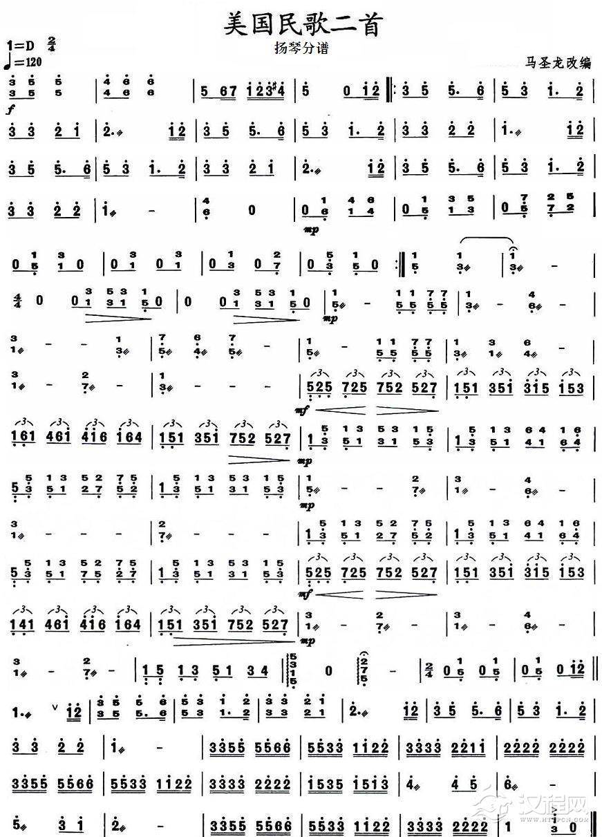 美国民歌二首之扬琴分谱