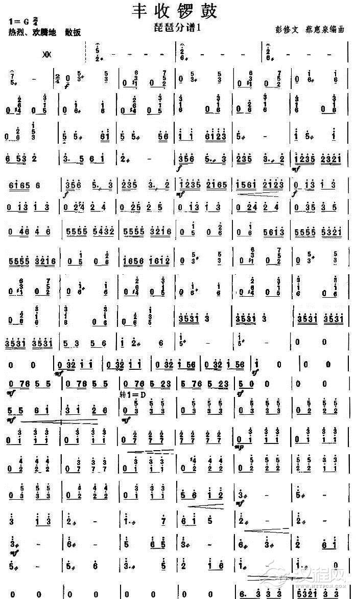 曲谱大全丰收锣鼓之琵琶分谱(下)