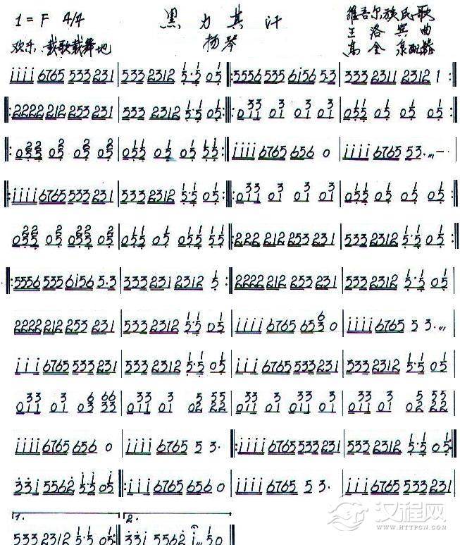黑力其汗之扬琴分谱