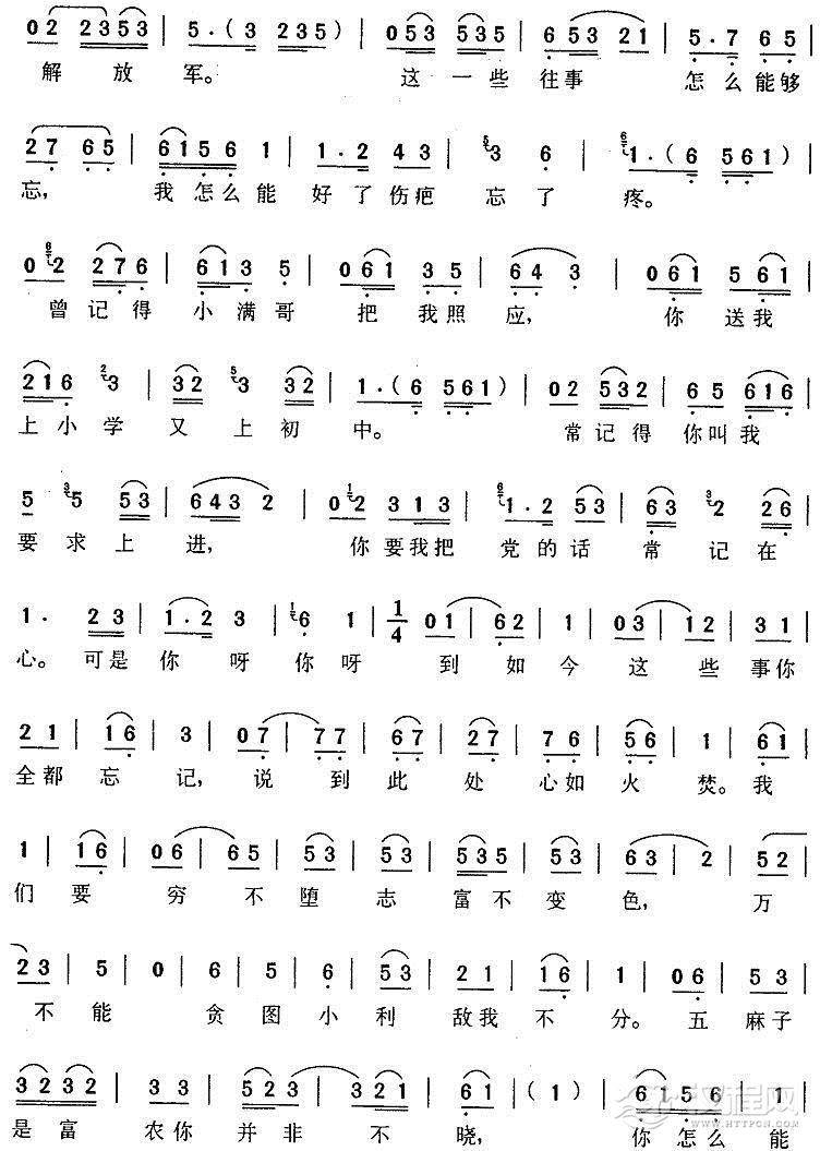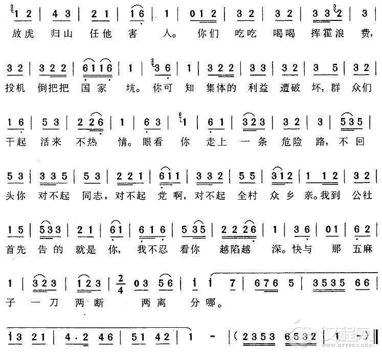 戏曲曲谱种地还难免擦伤皮肉(《高山下的花环》梁大娘唱段)