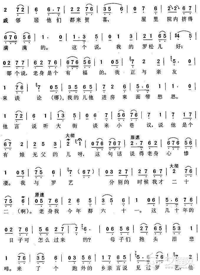 戏曲曲谱哭一声二丫头寿命短(《杨三姐告状》杨母唱段)