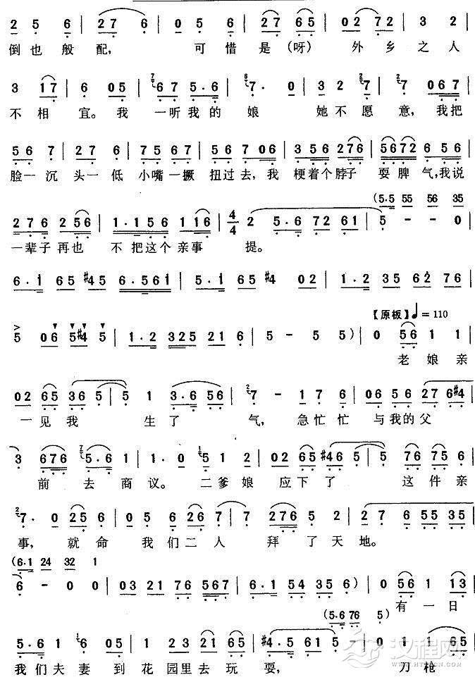 戏曲曲谱种地还难免擦伤皮肉(《高山下的花环》梁大娘唱段)