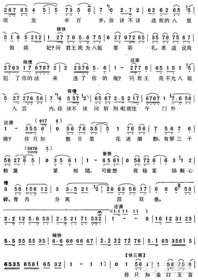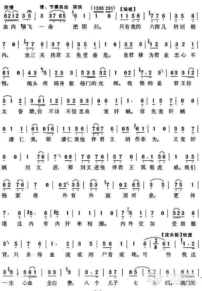 戏曲曲谱哭一声二丫头寿命短(《杨三姐告状》杨母唱段)