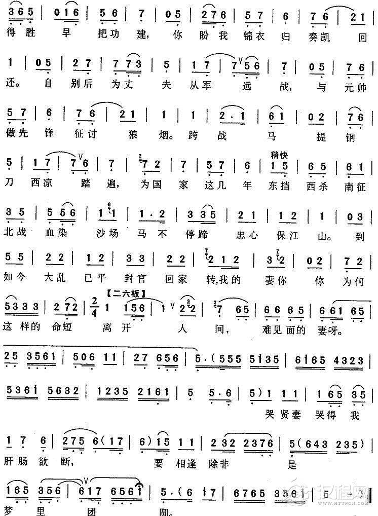 戏曲曲谱寒窑虽苦妻无怨([秦腔](《王宝钏·回窑》王宝钏唱段))