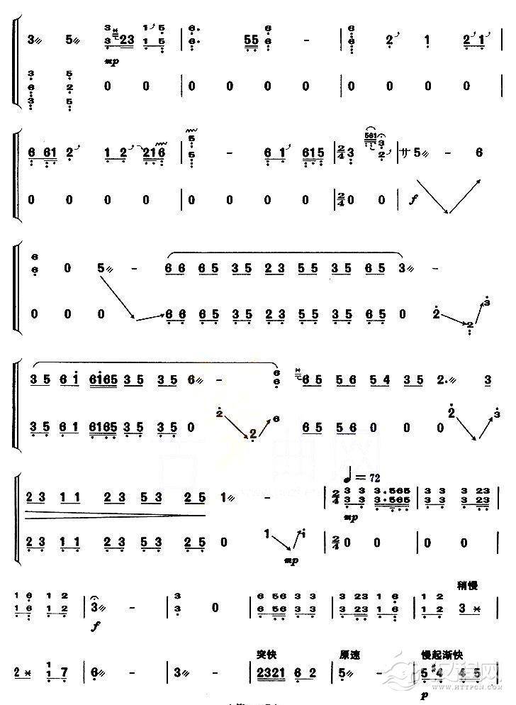 古筝谱《彩云追月》