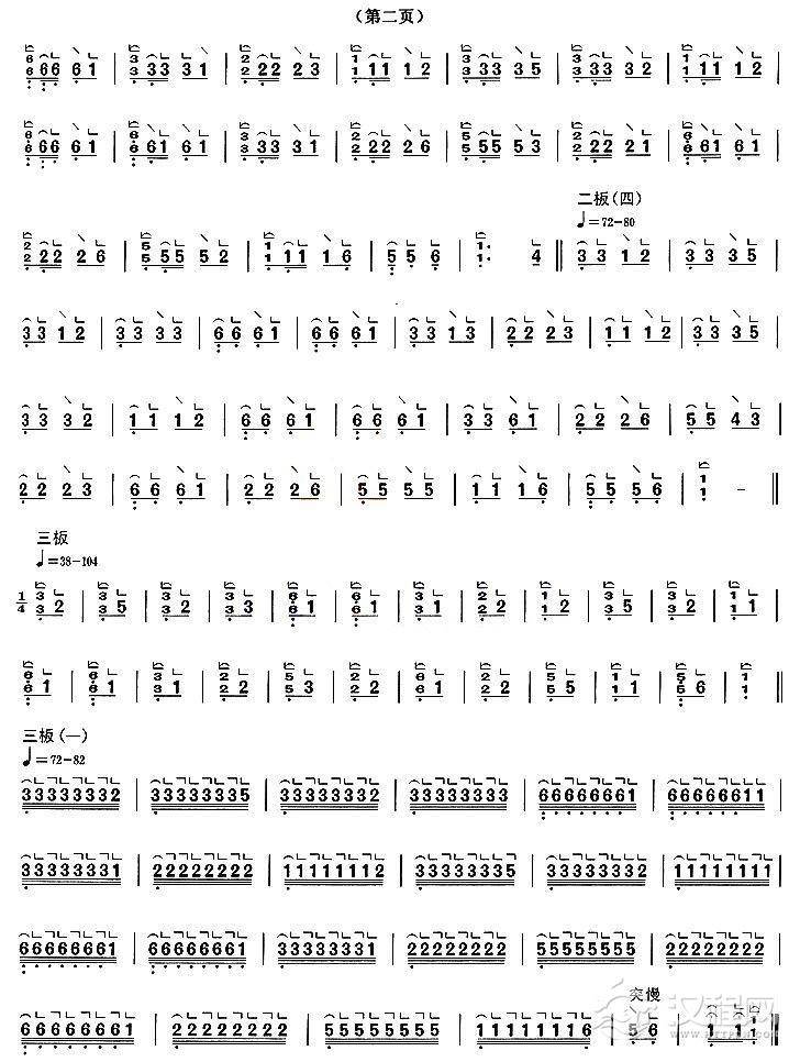 沂河欢歌(扬琴与笛子主旋合成谱)