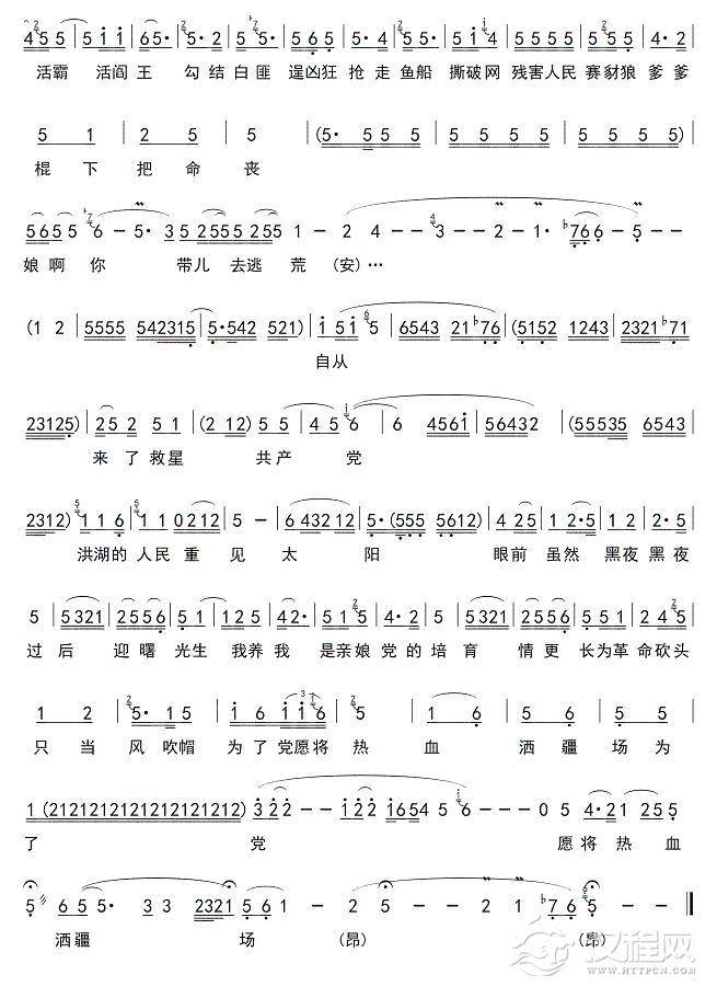 戏曲曲谱人也留来地也留(《朝阳沟》银环唱段)