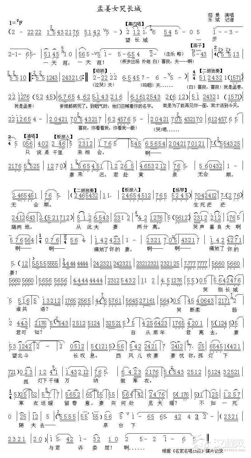戏曲曲谱[秦腔]孟姜女(《梦回长安》孟姜女唱段)