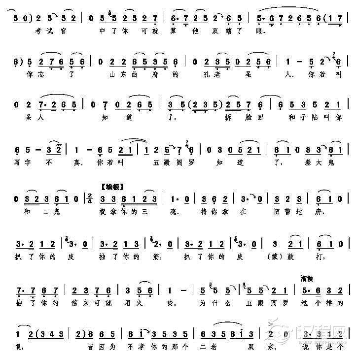 戏曲曲谱[秦腔]祖籍陕西韩城县(《三滴血》选段 )