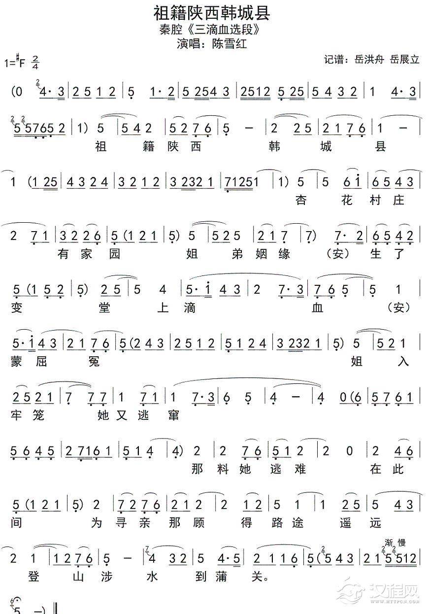戏曲曲谱[秦腔]我自幼父母双命断(《武松杀嫂》潘金莲、武松唱段)