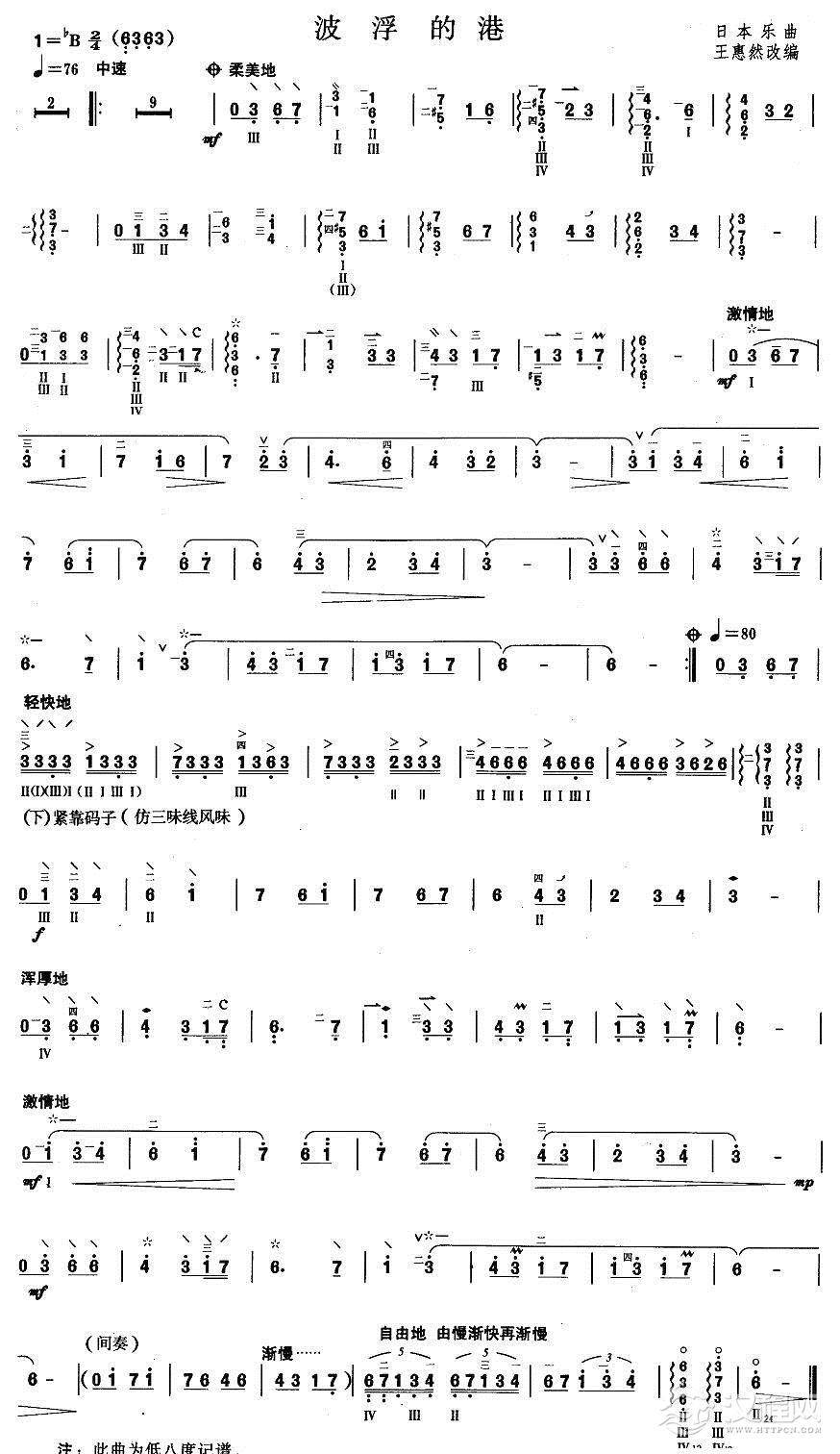 曲谱大全柳琴考级曲目四级:银湖金波