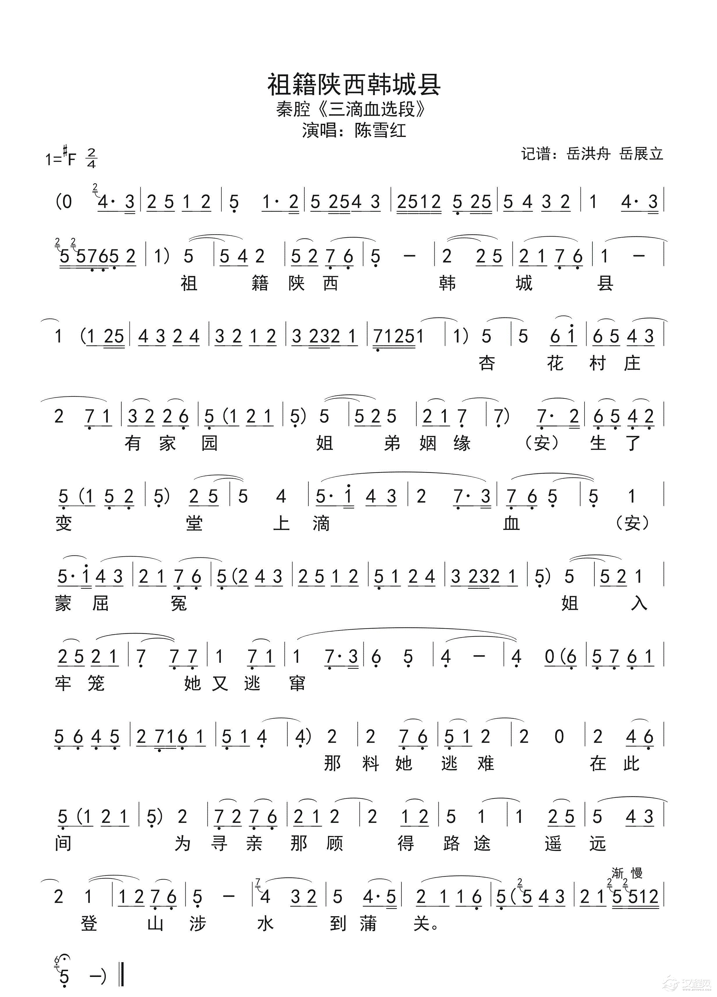 戏曲曲谱娘的眼泪似水淌