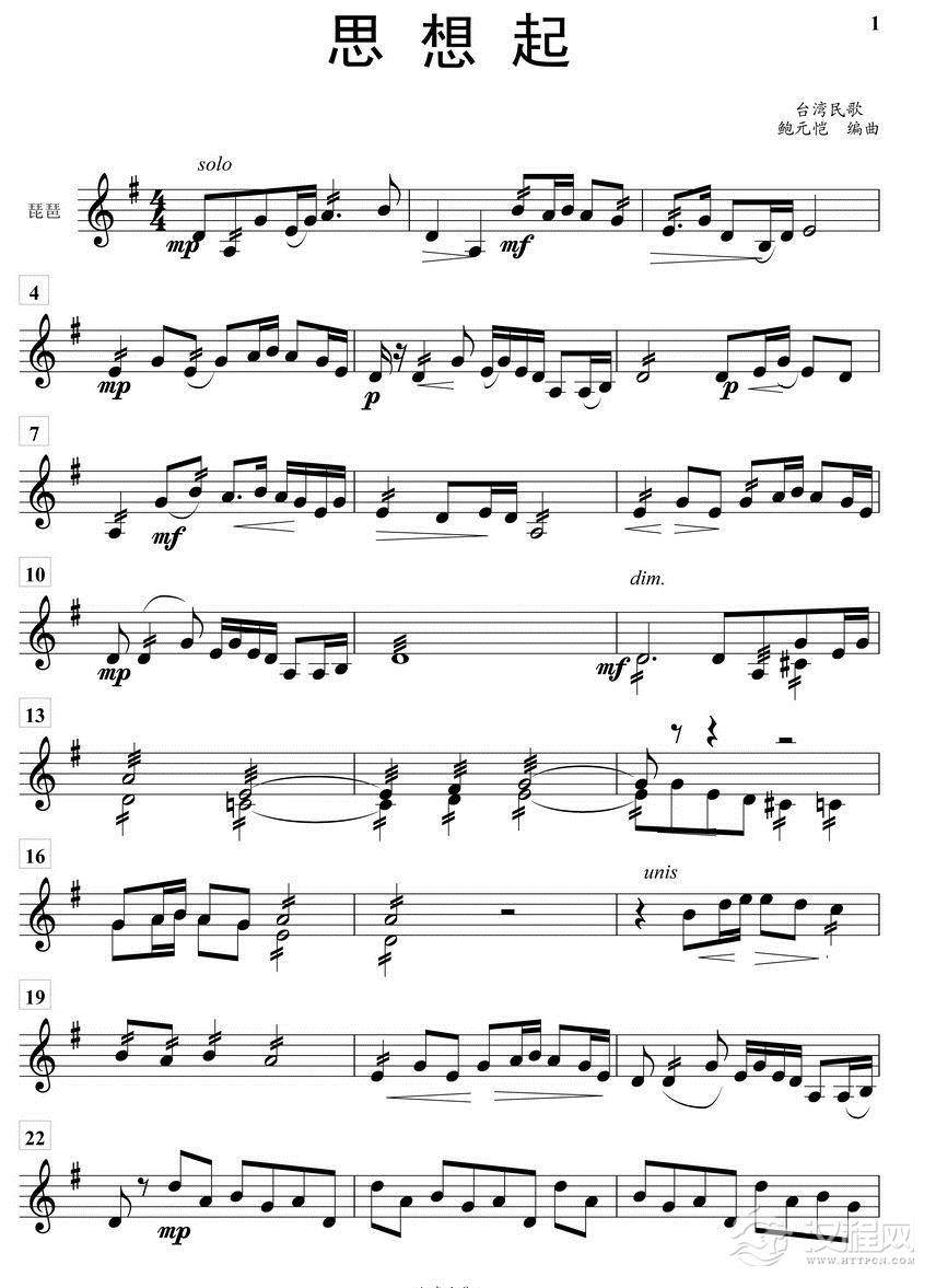 思想起琵琶分谱