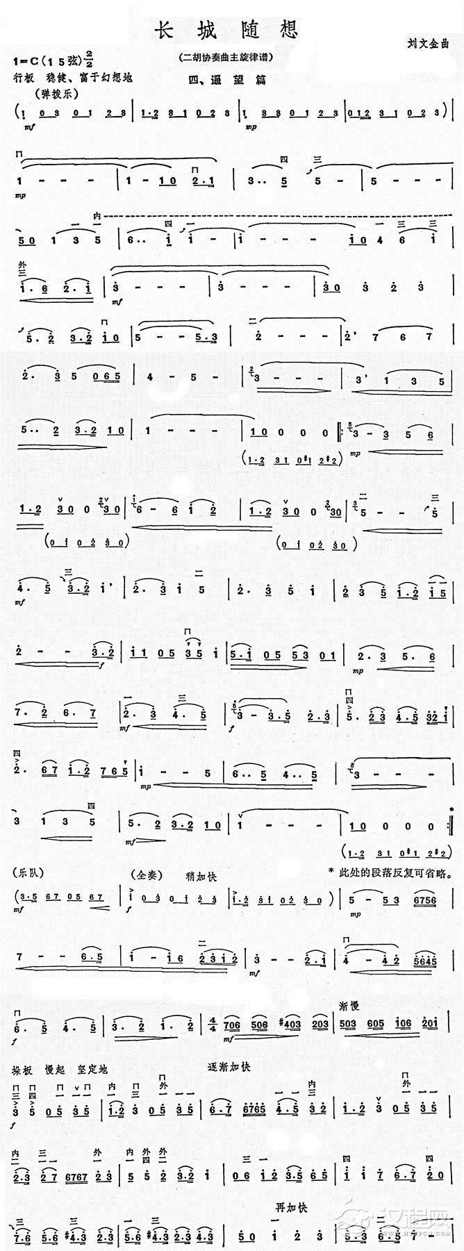 曲谱大全长城随想(二胡协奏曲主旋律谱) 一、关山)