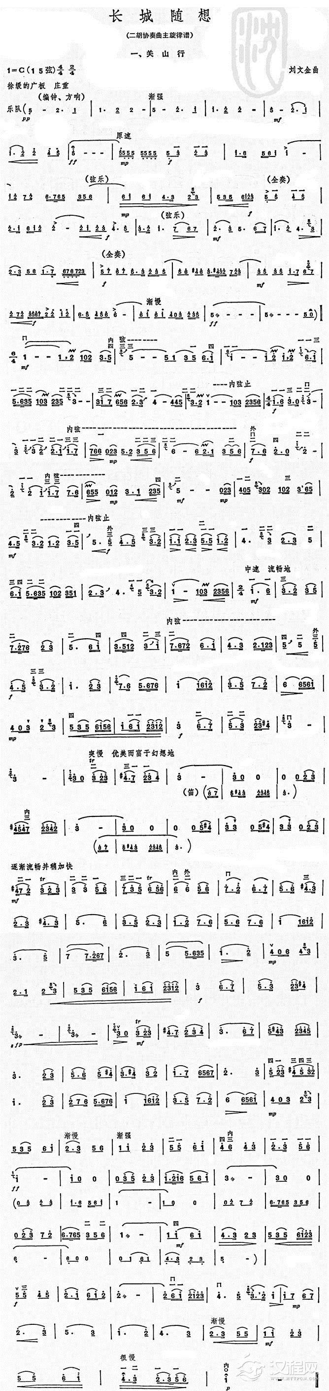 曲谱大全长城随想(二胡协奏曲主旋律谱) 四、遥望)
