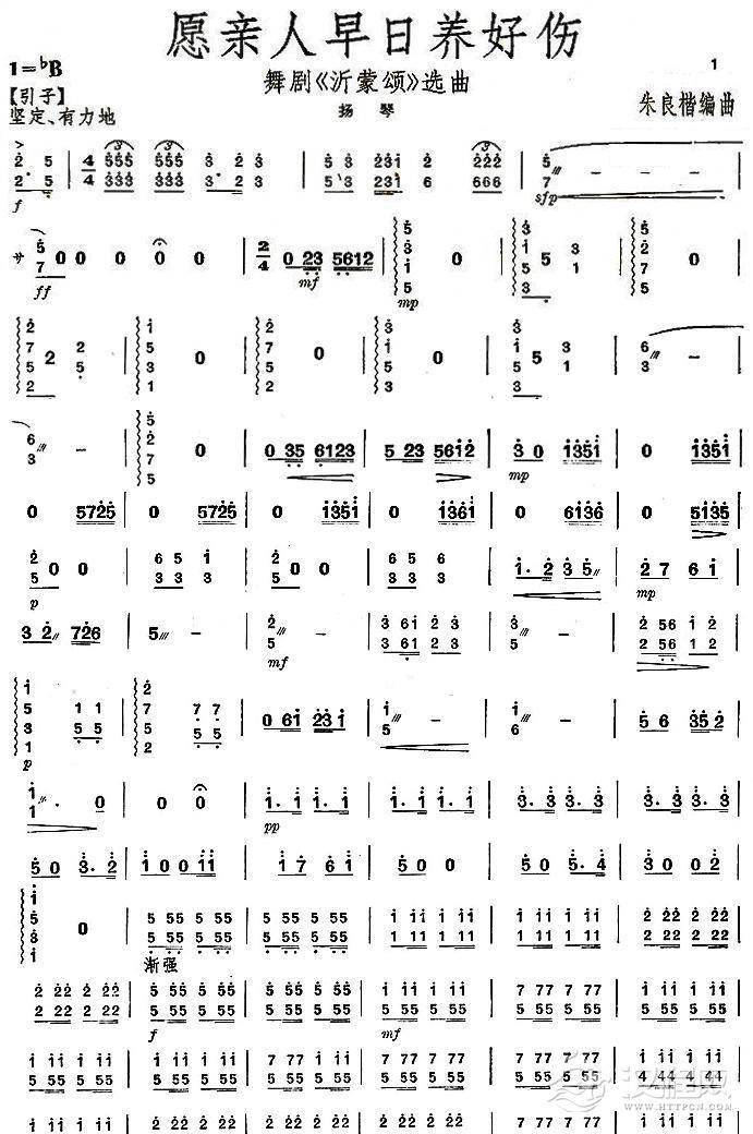 曲谱大全大寨红花遍地开(扬琴分谱1)