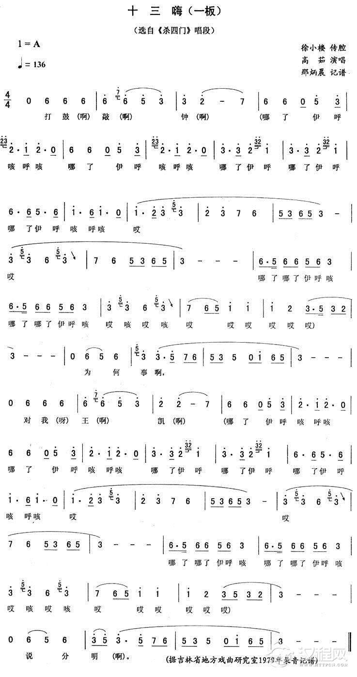 戏曲曲谱十三嗨(五板 [《杀四门》唱段])